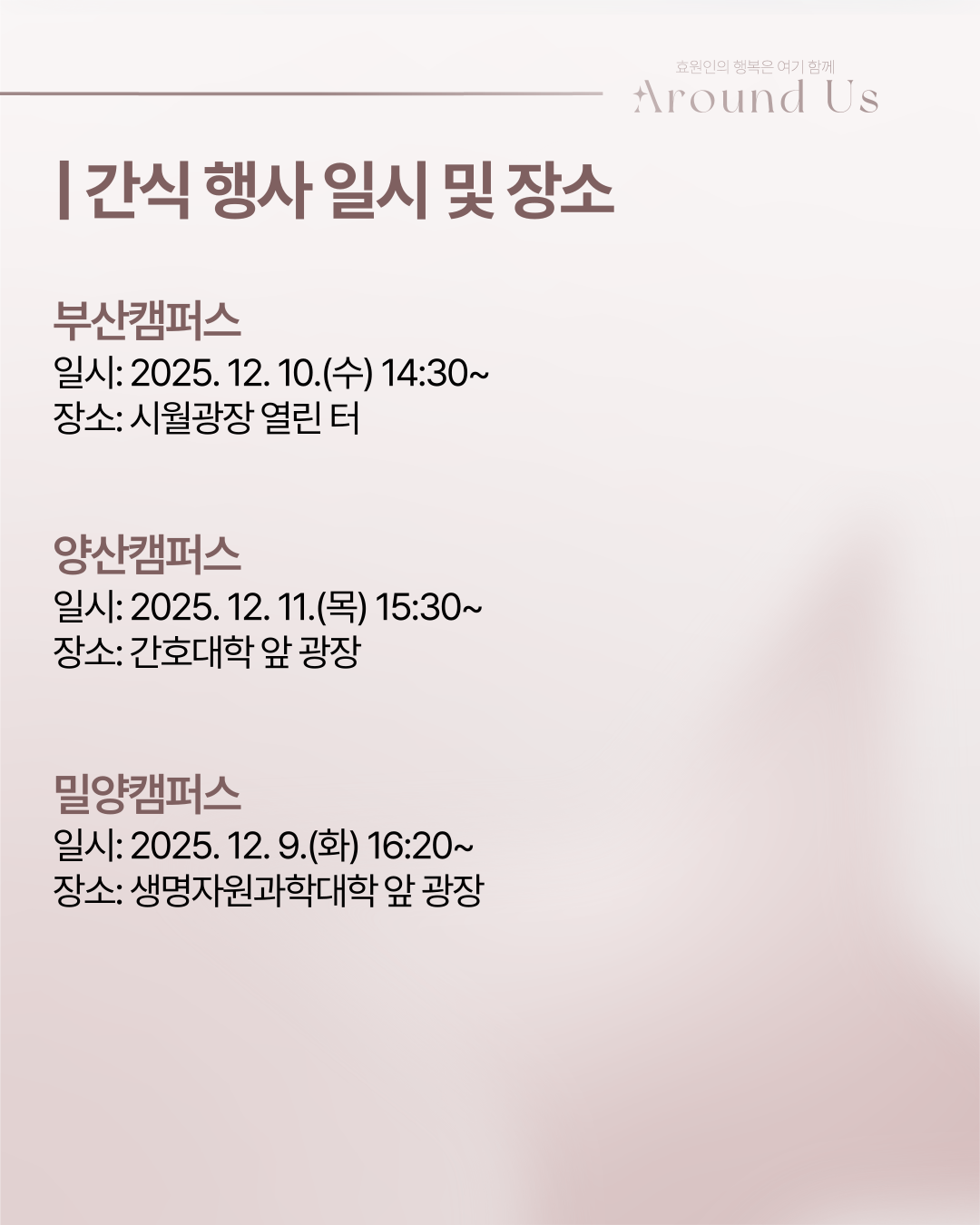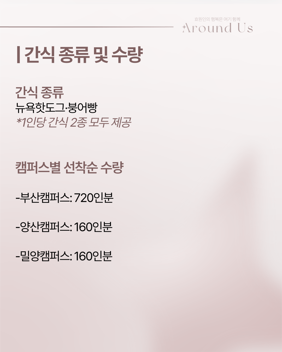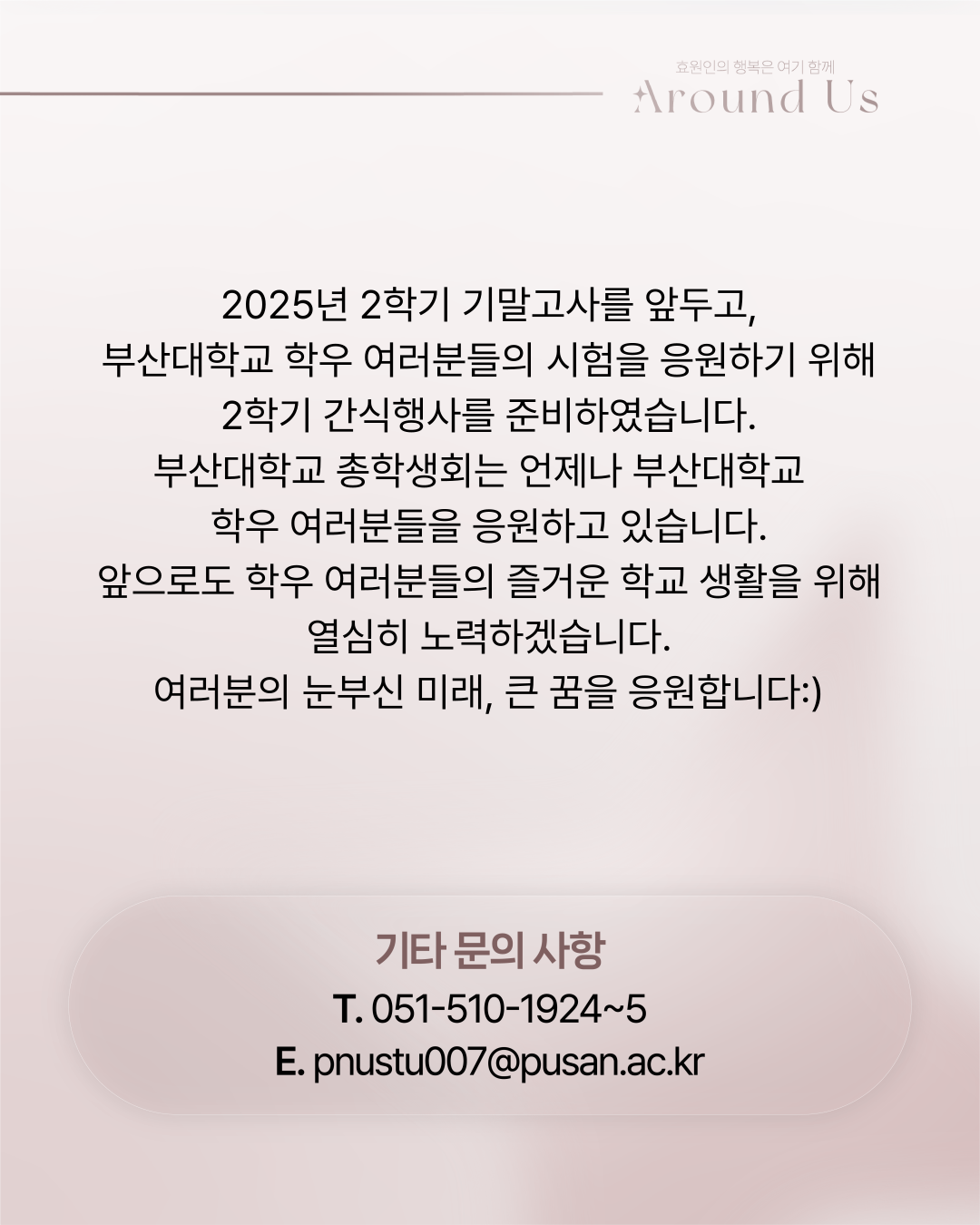 안녕하십니까, 부산대학교 제57대 총학생회 ‘Around us’ 학생복지국입니다.