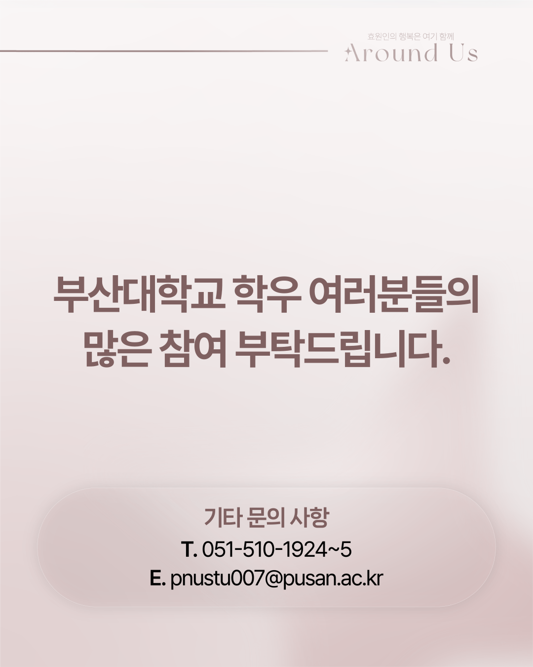 안녕하십니까. 부산대학교 제57대 총학생회 ‘Around Us’ 학생복지국입니다.