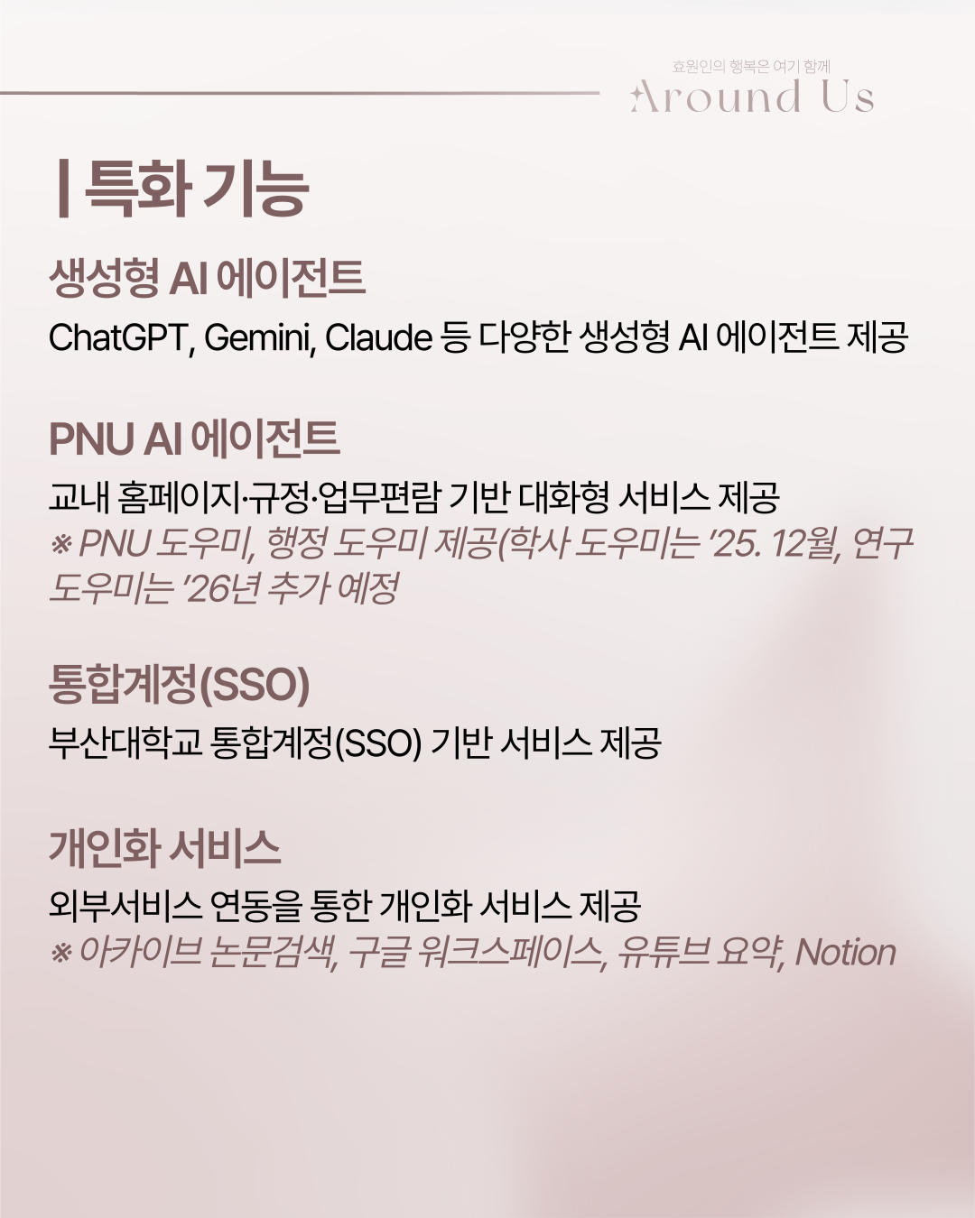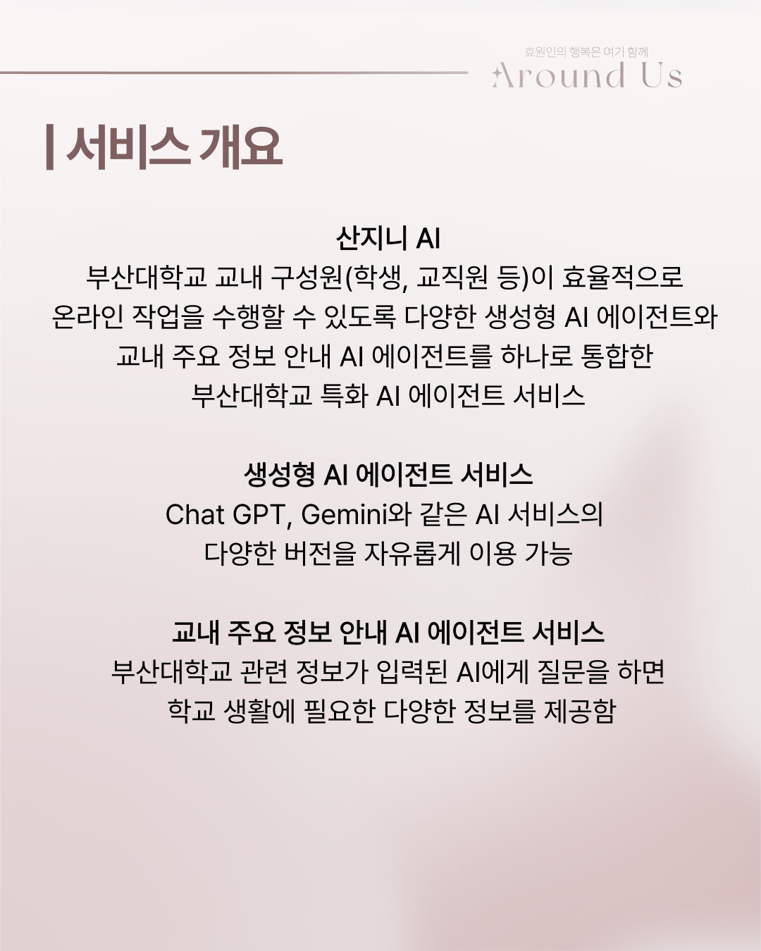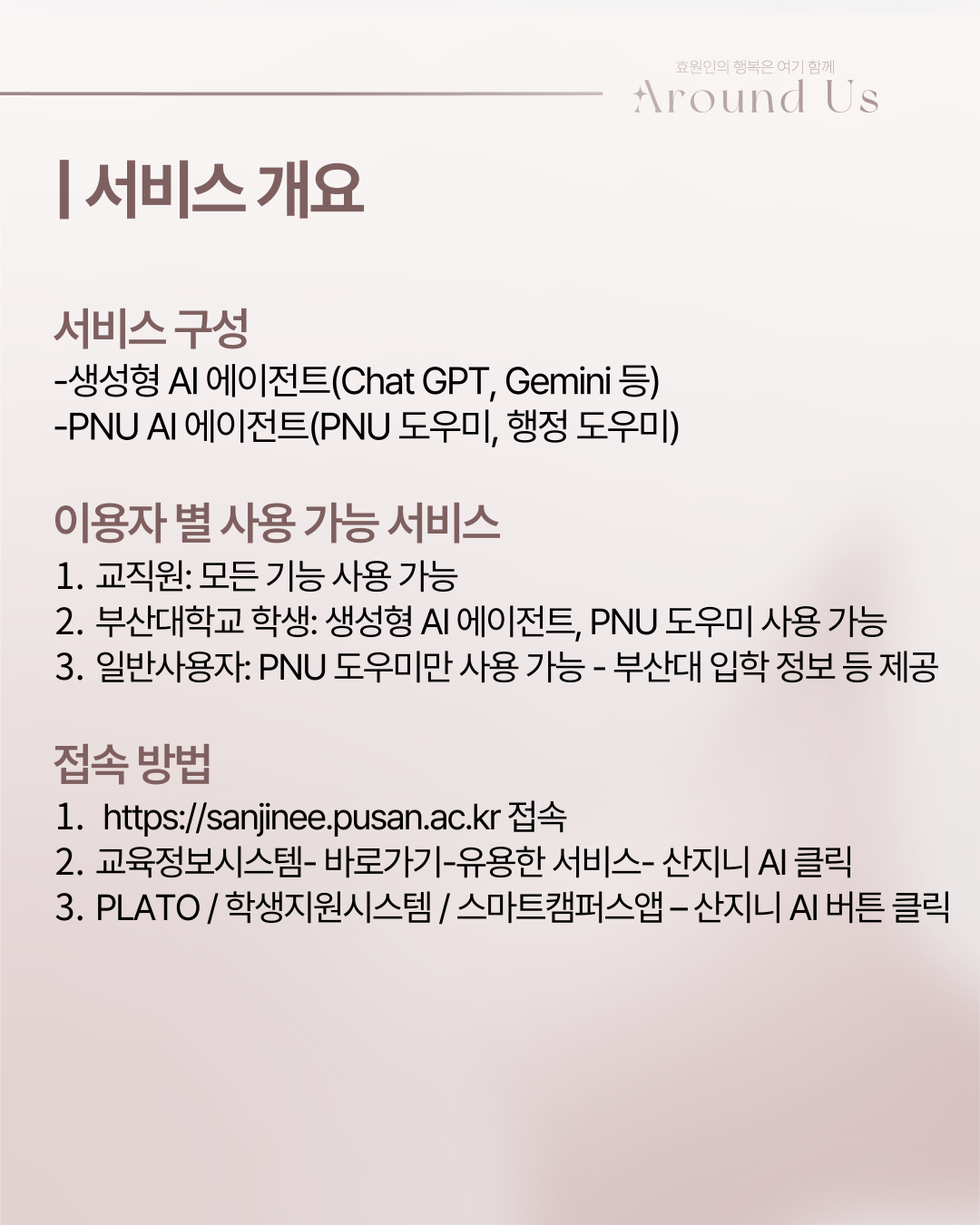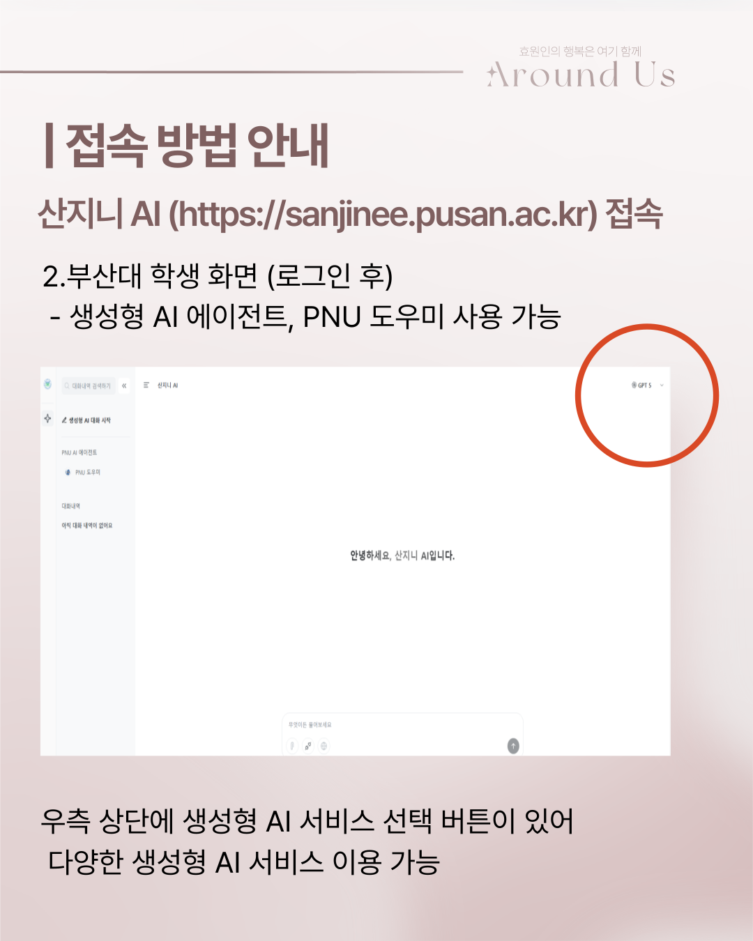 부산대학교 특화 AI 에이전트 서비스인'산지니 AI' 서비스가 개시되었습니다.