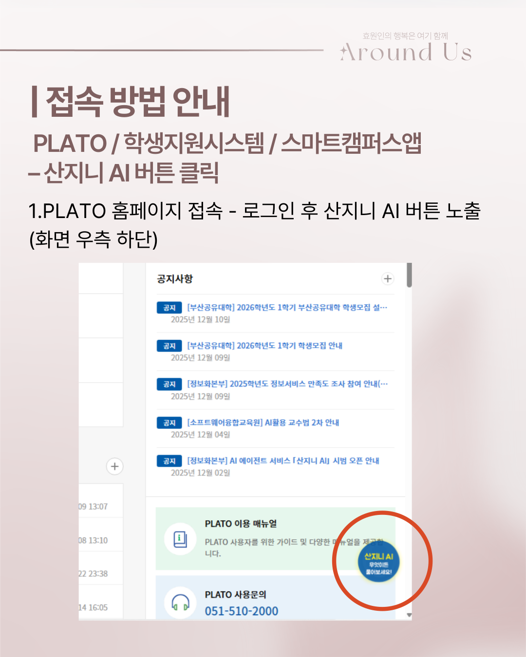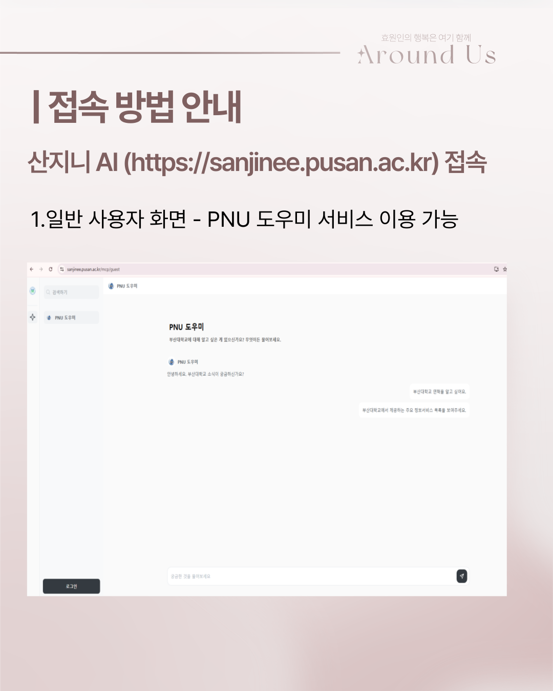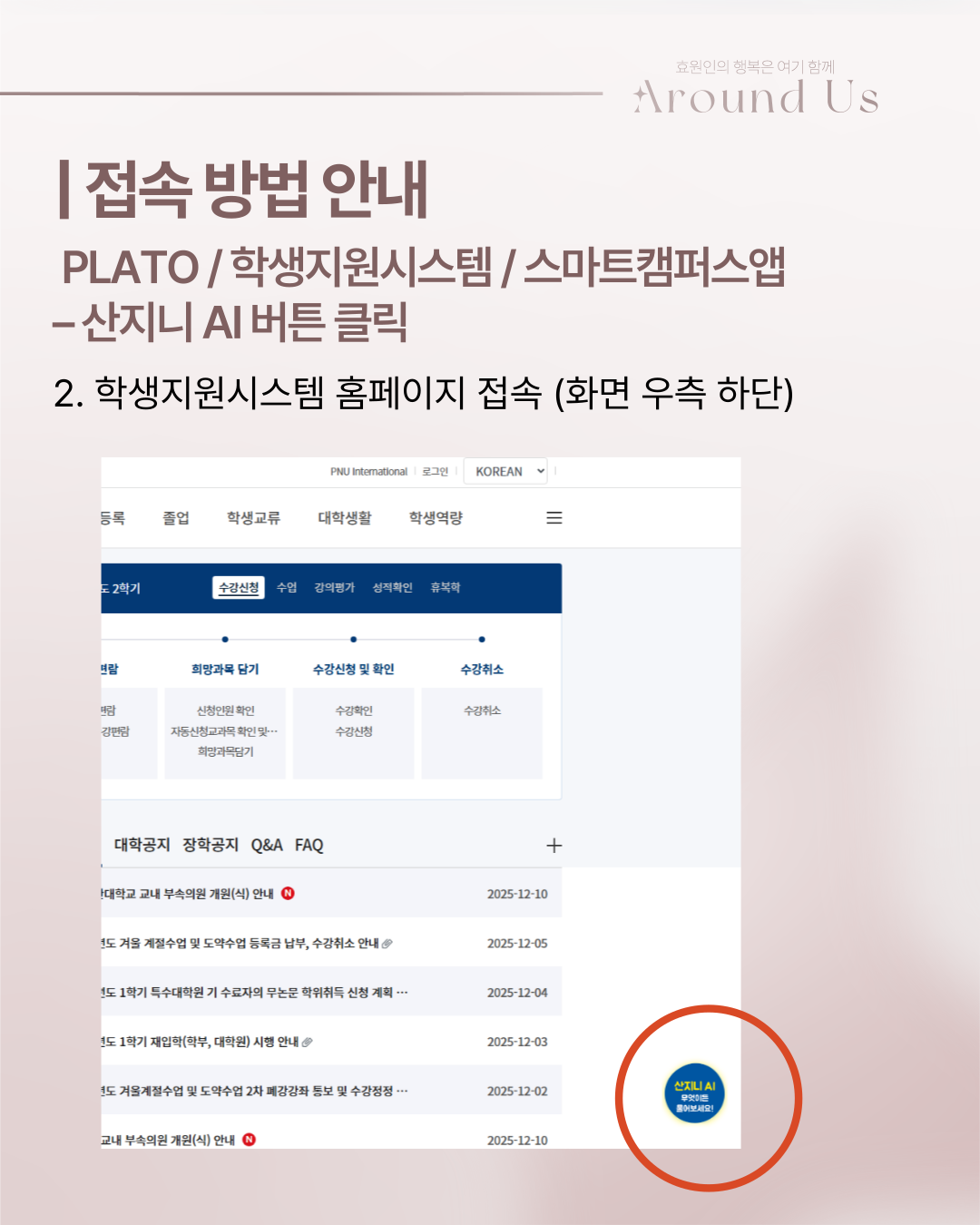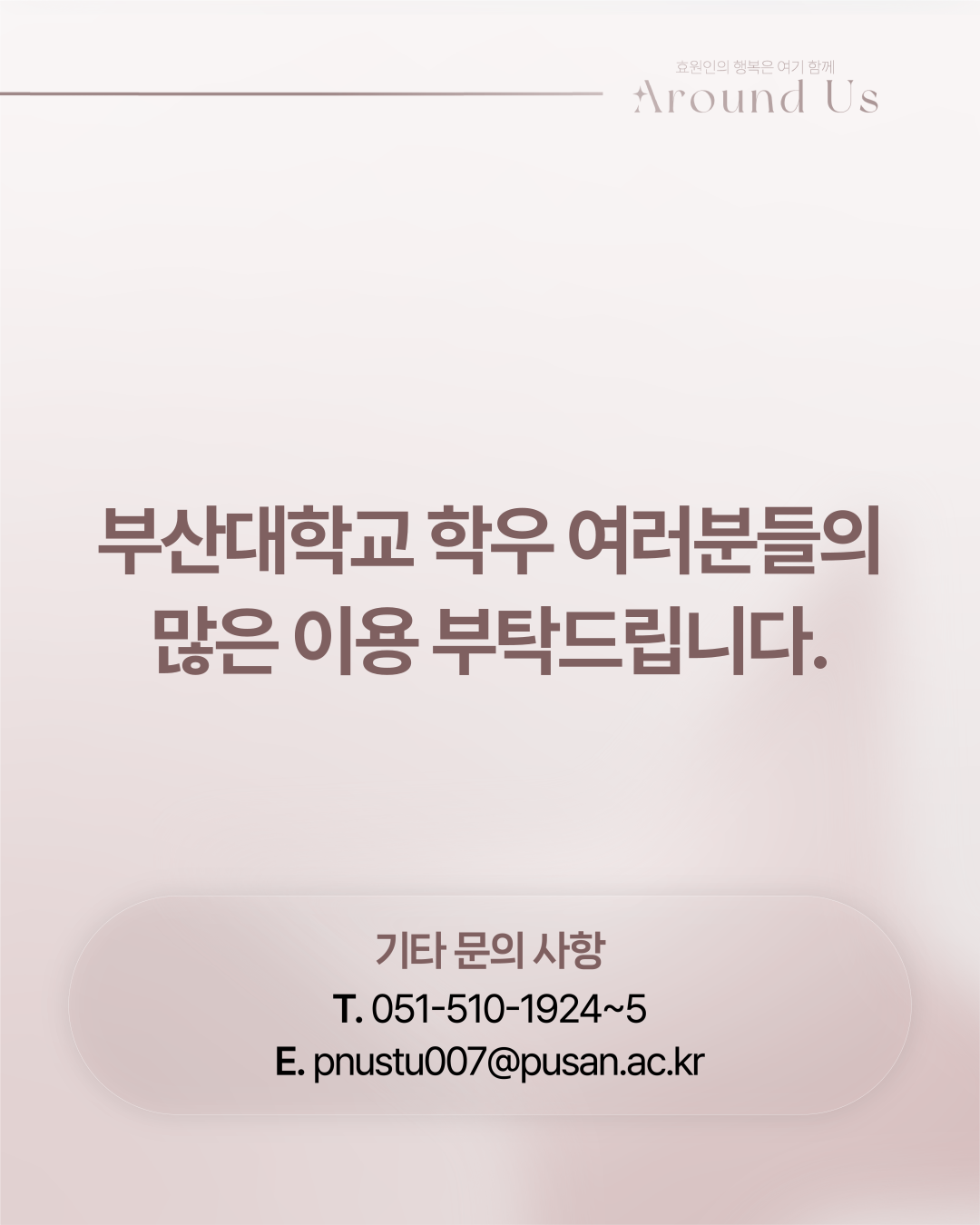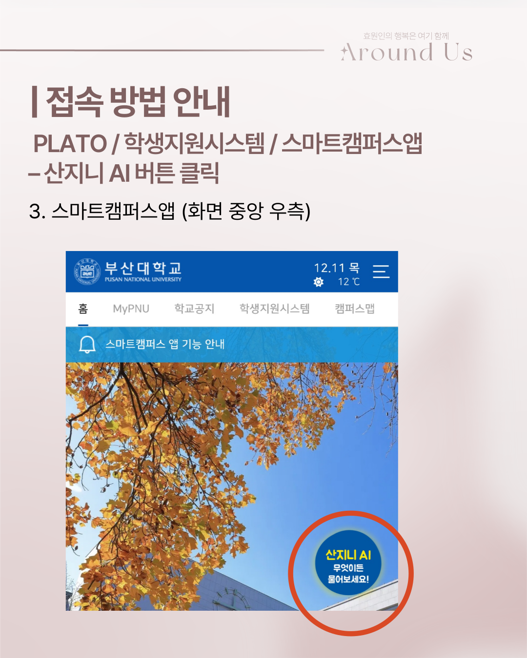 안녕하십니까, 부산대학교 제57대 총학생회 'Around us' 학생복지국입니다.